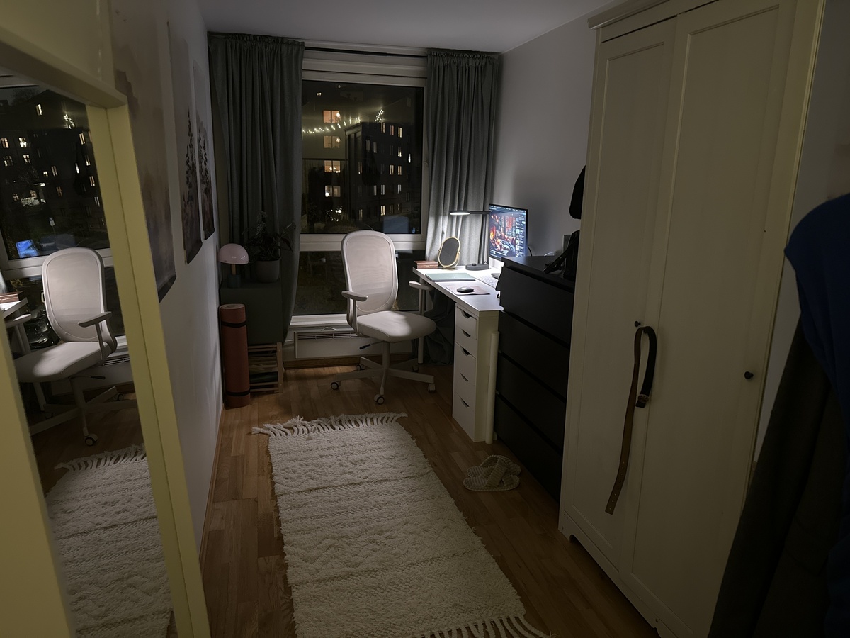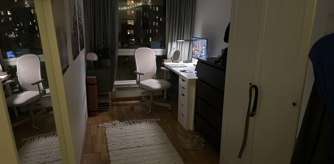 Im planning to move out from my room in a spacious 2 floor apartment. Big kitchen, Livingroom and two bathrooms.