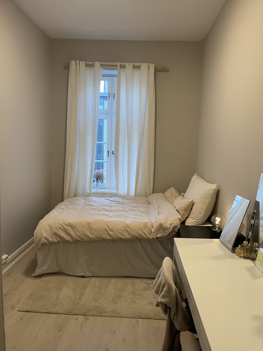 Leiligheten ligger i 2. etasje. Jeg selger gjerne seng, skrivepult og skap til den som flytter inn.💓