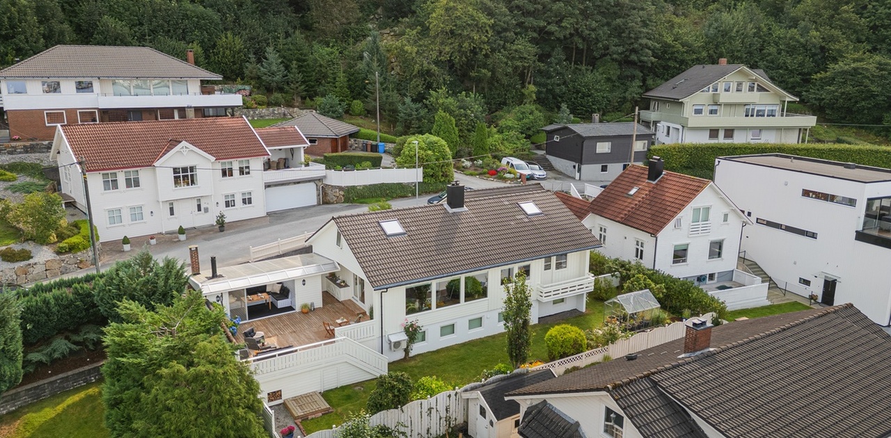 Hoveddel av enebolig med fjordutsikt, hage, pizzaovn, garasje med elbillader