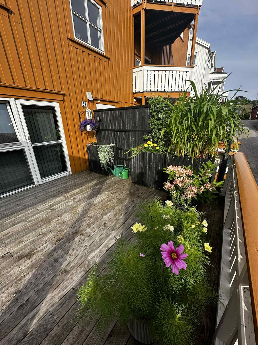 Leiligheten disponerer en romslig veranda med behagelig morgensol, som gir en fin start på dagen.