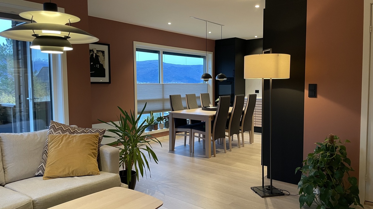 Leiligheten var nybygd høsten -23 og er betydelig oppgradert, inkluderert bl.a smarthusløsning, vedovn, måltilpasset solskjerming til sydvendte vindu, side-by-side kjøleskap og fryser, vinskap, badekar og dusjtoalett.