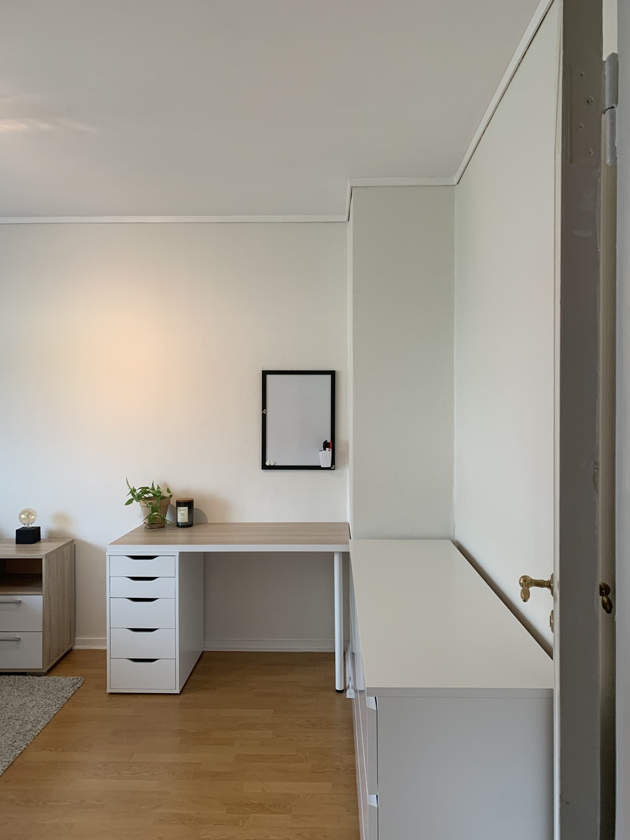- Soverom 2: Seng 120cm, nattbord, stor pult med skuffer
