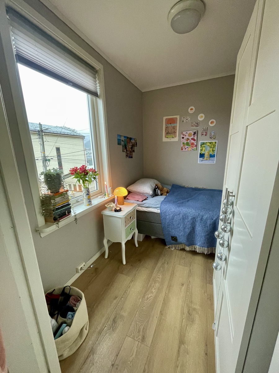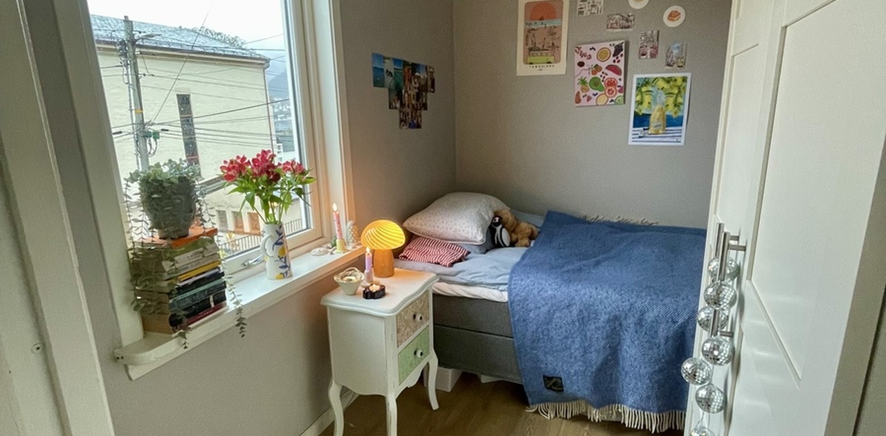 Soverommet som leies ut har nydelig utsikt mot Ulriken, og inkluderer et stort klesskap. Sengen kan kjøpes for 1500 kr om ønskelig. :)