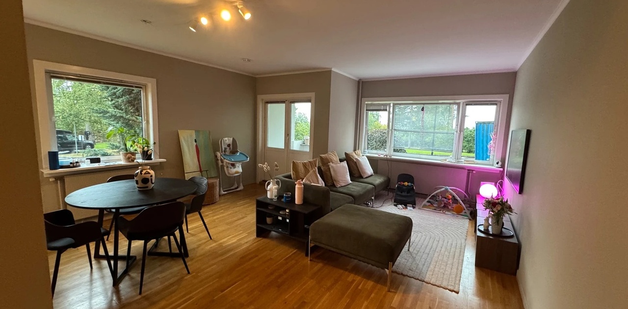 Solrik leilighet i første etasje leies ut fullt møblert i forbindelse med utenlandsopphold. Leietiden er fra 01.12.2025 - 30.04.2025.