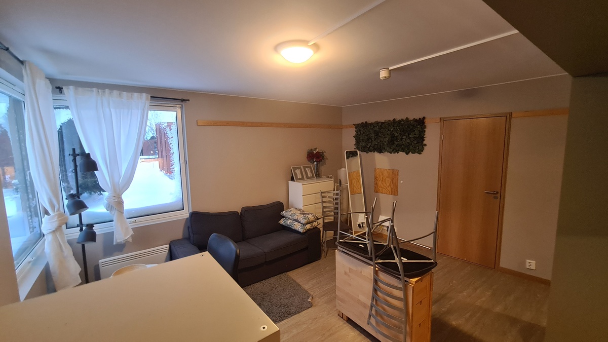 The apartment has two bedrooms, a bathroom, and a rather large room combining a kitchen and living room. There's quite a few green areas outside, a short walk to the closest bus stop, and a short bus trip to both Gløshaugen and Dragvoll by bus, with frequent departures. Rema and Bunnpris are just a short walk from the apartment, and the closest Kiwi and Meny are not far away either. SiT has a gym/fitness center in the student village as well as a library with both some space for studying and recreation.