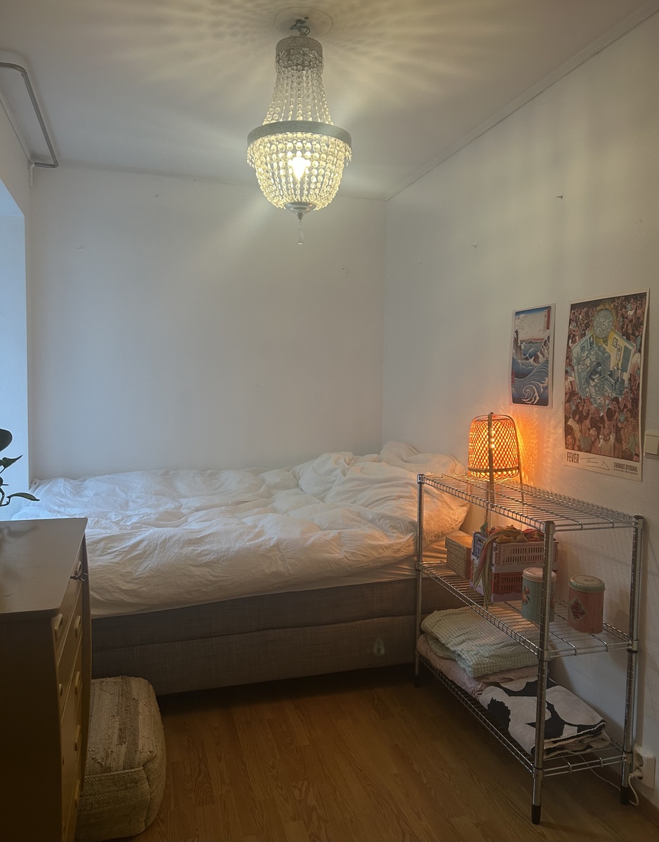 Jeg leier ut rommet mitt fra januar til juli 2026 fordi jeg skal på utveksling. Rommet er koselig og er ett av totalt 4 soverom i leiligheten. Leiligheten er stor og har ett bad, romslig stue, avlukket kjøkken med spisestue og til og med en bakgård! Det er også to romslige boder som gir mye oppbevaringsplass.