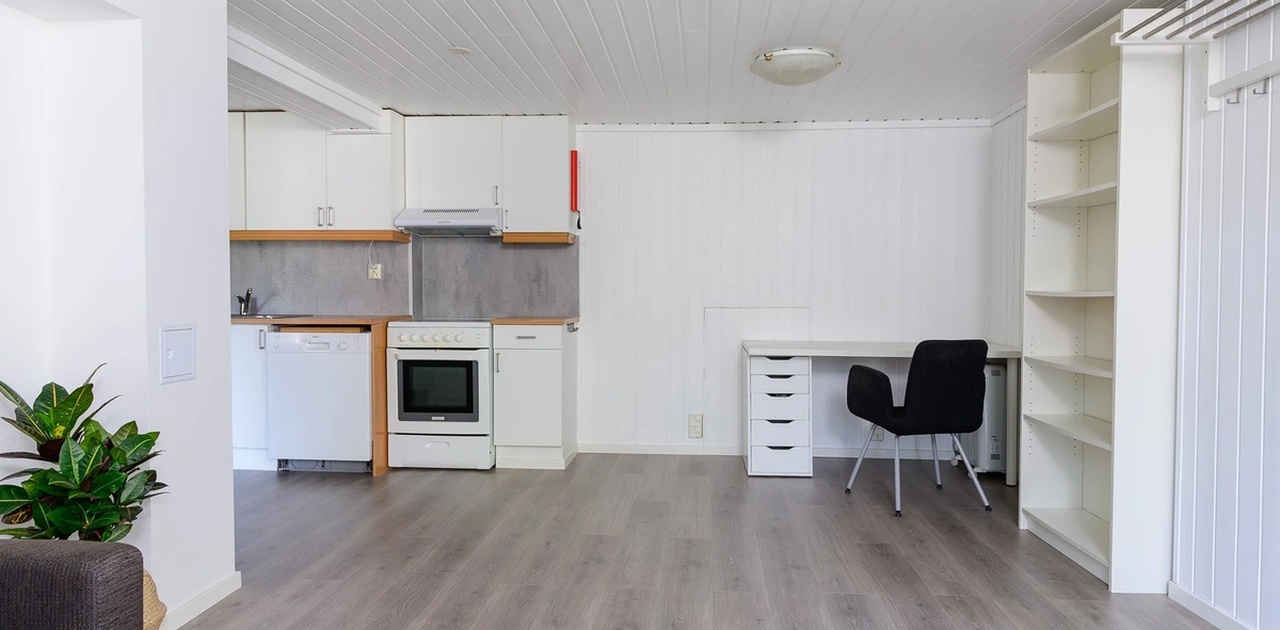 Totalt 50 kvm: 1 Soverom, bad, stue, kjøkken.