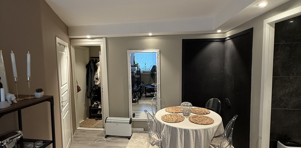 Leiligheten ligger svært sentralt i Bergen, ca. 5 min. Unna bryggen. Leiligheten inneholder et stort soverom (11kvm) og et lite (6kvm). Separat kjøkken og stue med spisekrok og sofakrok. Det er inkludert strøm og internett (verdi ca. 2500kr/ mnd). Leiligheten passer bra for to studenter eller et par. Jeg er veldig opptatt av at de som leier her skal trives og har en god dialog når det er ting som må ordnes osv.