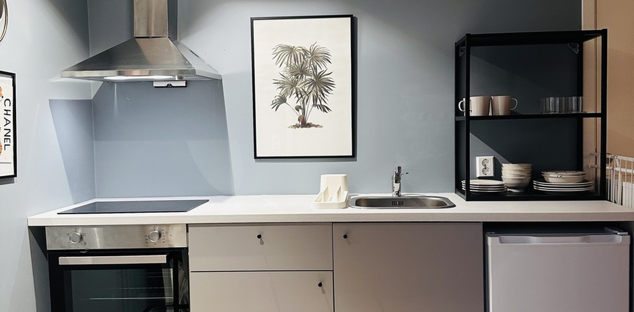 Hybelen består av 1 rom og bad. Den inneholder et hybelkjøkken og stue/sovedel med en sovesofa. Det vil bli satt inn en vaskemaskin på badet.