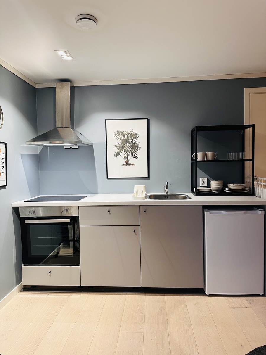 Hybelen består av 1 rom og bad. Den inneholder et hybelkjøkken og stue/sovedel med en sovesofa. Det vil bli satt inn en vaskemaskin på badet.