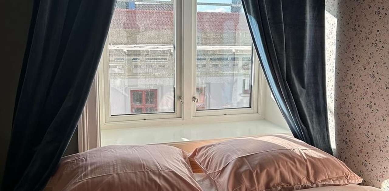 The apartment has plenty of charm and details that make it unique, my favorites being the large kitchen area and beautiful wooden ceilings with integrated dimmable lights. A new balcony was added at the start of 2025 which is lovely during summer. Also, the scaffolding visible in the photos is long gone.