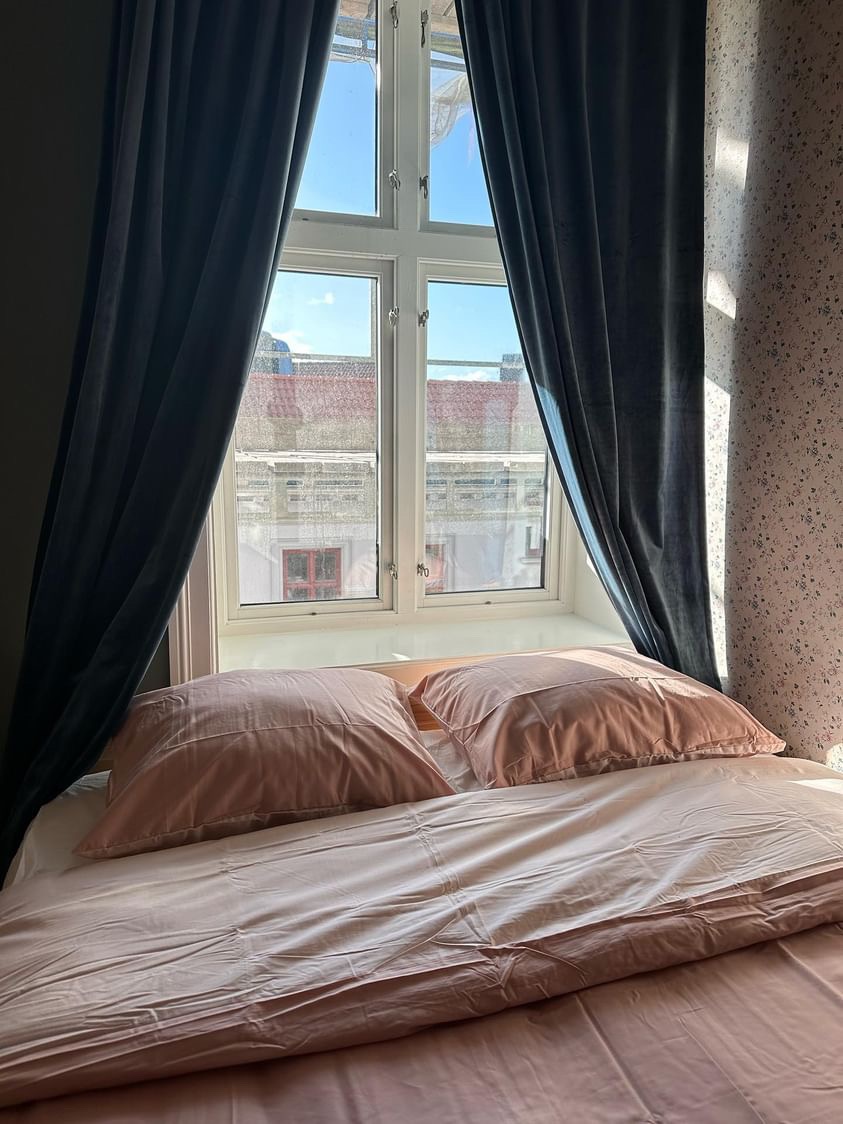 The apartment has plenty of charm and details that make it unique, my favorites being the large kitchen area and beautiful wooden ceilings with integrated dimmable lights. A new balcony was added at the start of 2025 which is lovely during summer. Also, the scaffolding visible in the photos is long gone.