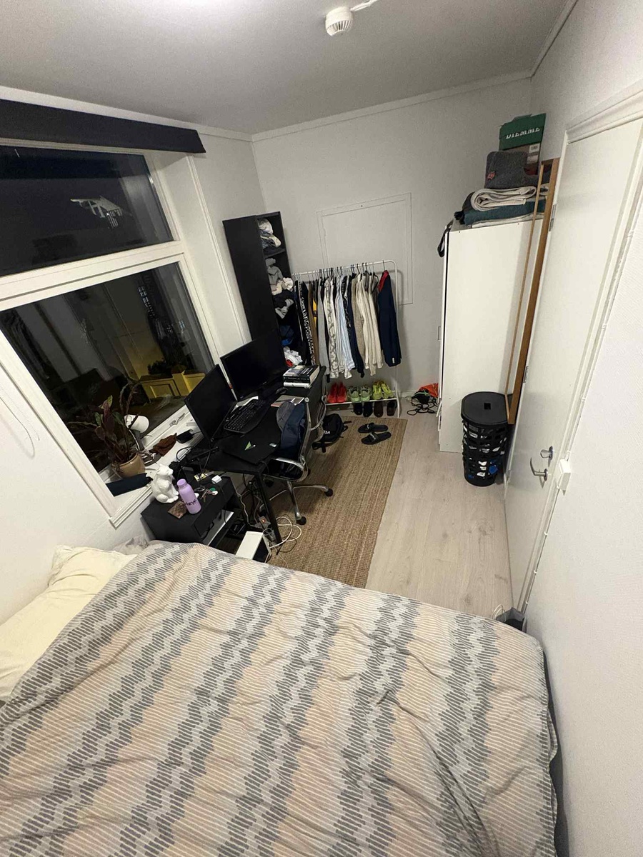 Jeg leier ut midt rom i bofellesskap midt i Bergen sentrum. Rommet er ca 8-10 kvadratmeter. Det er plass til 120 seng, pult og skap. Bofellesskapet er sammen med 5 andre studenter.
