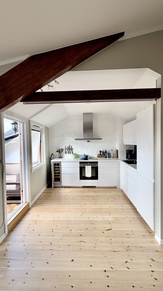 Kjøkken: Stilrent og moderne kjøkken i hvitt med integrerte hvitevarer(ovn, oppvaskmaskin), god skapplass og fine arbeidsflater. Her er det lagt vekt på både design og funksjonalitet.