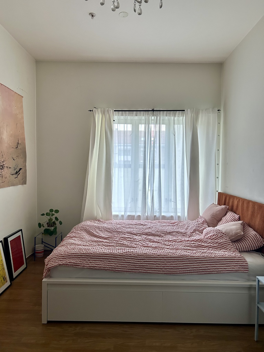 The room is 16m2 and has its own separate bathroom (all the rooms have their own). The room is partially furnished with a wardrobe. It's available from 01/01 (a couple of days later could be possible as well).
