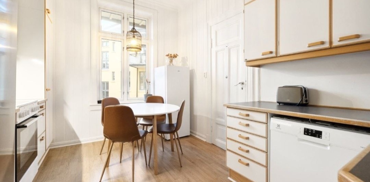 Contract one year, after one year its possible to one more year. Cozy apartment with stucco and high ceilings. Very central by Majorstuen. Short way to subway, tram and bus. A few minutes by subway to Jernbanetorget, Oslo S, BI University College and Holmenkollen and much more. Walking distance to Frognerbadet and Frognerparken. In the immediate area you have lots of clothing stores, grocery stores, restaurants, cafes, gyms, bars, etc .. Here you live very central but at the same time a short way to nature.