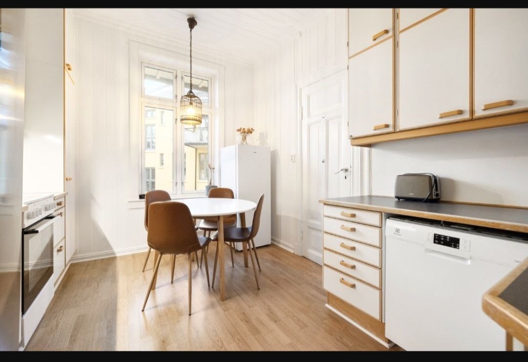 Contract one year, after one year its possible to one more year. Cozy apartment with stucco and high ceilings. Very central by Majorstuen. Short way to subway, tram and bus. A few minutes by subway to Jernbanetorget, Oslo S, BI University College and Holmenkollen and much more. Walking distance to Frognerbadet and Frognerparken. In the immediate area you have lots of clothing stores, grocery stores, restaurants, cafes, gyms, bars, etc .. Here you live very central but at the same time a short way to nature.