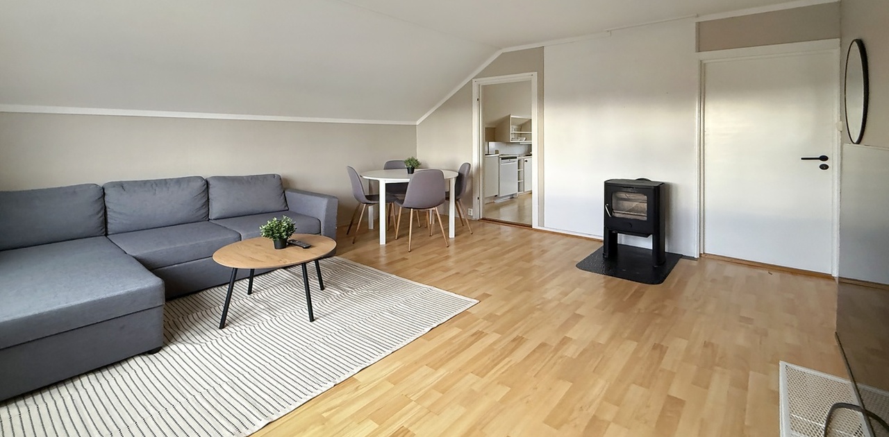 Leier ut toppetasjen i en horisontaldelt tomannsbolig. Boligen leies ut møblert som vist på bildene, og hvitevarer følger med. Vaskemaskin er tilgjengelig i kjelleren. Parkeringsplass på egen tomt. God plass til lagring i kjeller og bod.