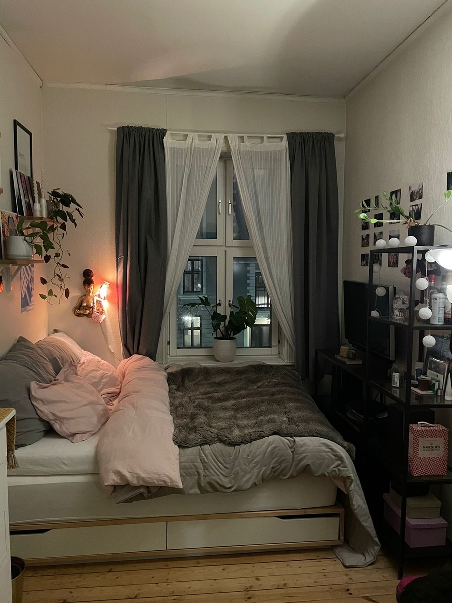 There is a large living room area to as well to hang out. The room comes partly furnished, it consist of a wardrobe, cabinet and clothes rack, there is a possibility to purchase the bed as well with some extra storage shelves.