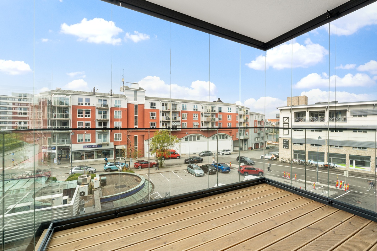 Dette er en flott og romslig leilighet med tre rom, hvorav to er regulert til soverom. Eneste grunn for at rom nummer 3 er definert som kontor er på grunn av lysforhold og at det er krav til tilstrekkelig dagslys for å kalles soverom. Dette er regulert som kontor, men er rom for varig opphold, det oppfyller krav til rømingsveier og størrelse. Medierommet har etter ferdigstillelse målt lysnivåer og blitt omregulert fra medierom til soverom. Leiligheten har et fullverdig bad og et separat toalett. Opplegg for vaskemaskin på bad innenfor soverom som vender mot Østre Strand gate og Snadderkiosken. Pent kjøkken i L-form og en stor innglasset balkong på 8,7 kvm. Alle rommene har god plass til seng og annet møblement. Passer like godt for studenter som familier og par! Ta kontakt for visning på boligen.
