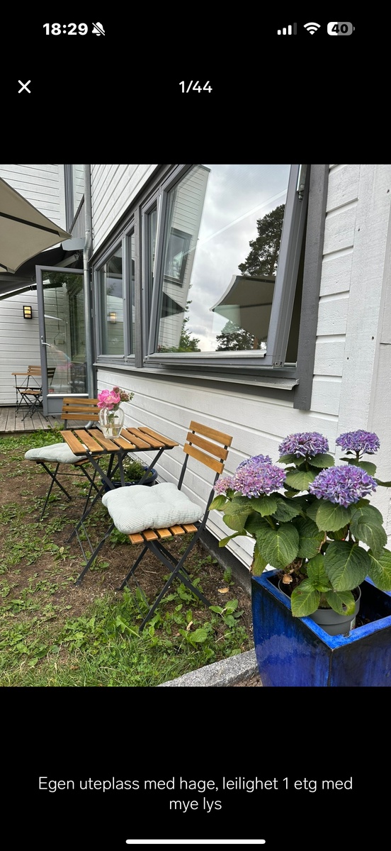 Nyoppusset sentralt til både byen, Skøyen, Fornebu og Lilleaker med CC Vest. Kort vei til Lysaker Stasjon for flytoget. Mye lys, egen hage. Sovesofa kan omgjøres til dobbeltseng med gode fjørmadrasser. Stor bad med Miele hvitevarer, dusj og badekar. Gulvarrme og internett inkludert. Strøm og varmt vann bidrag kr 750 sommer og kr 900 vinter. Leies ut til kun 1 voksen med fast inntekt eller student. Rolig område nær sjøen og fint turterreng.