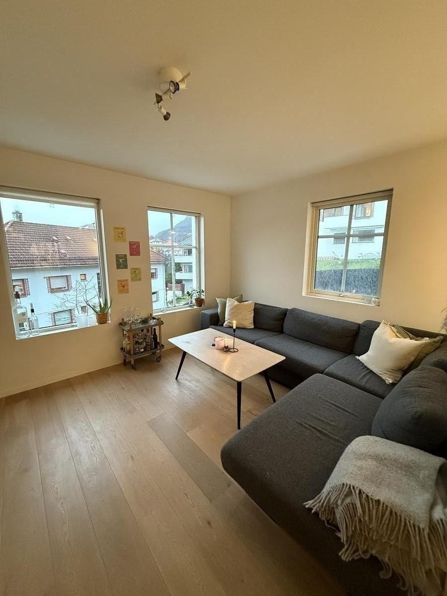 Leiligheten er moderne, lys og koselig, og ligger på Wergeland – kun 2 minutter fra Rema 1000 og bybanestoppet. Den korte avstanden til banen gjør at leiligheten ligger veldig sentralt!