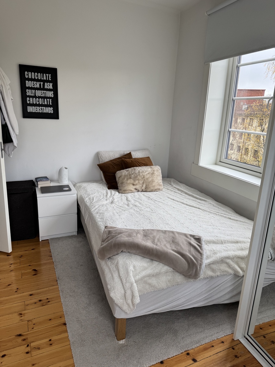 Du kommer til å bo med tre andre kvinner i alderen 27-30 år, som både jobber og studerer. Det er mye rom for egentid og å trekke seg tilbake, samtidig som man kan dele felles måltider.