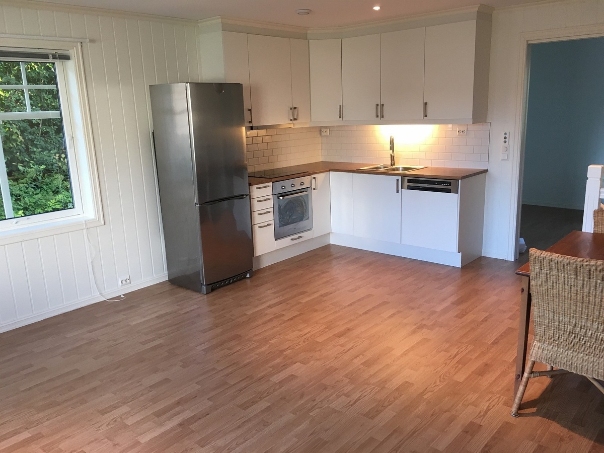 Leiligheten er lys og romslig med 2 soverom på 13 og 8,9kvm. Boligen oppvarmes via vannbåren varme som er inkludert i husleien. Delvis møblert, med garderobeskap, kjøkkenbord og stoler etc. Boligen har balansert ventilasjon, oppvaskmaskin, vaskemaskin og kjøl/fryseskap, samt garderobeskap. Kabel tv og bredbånd er også inkludert i husleien. Det følger med 1 biloppstillingsplass.