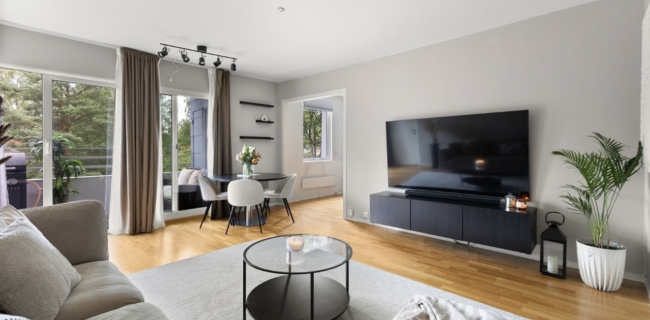 En lys og moderne 2-roms med god planløsning og herlig balkong. Leiligheten ligger i et rolig og tilbaketrukket område på Skøyenåsen med kort vei til Østensjøvannet og Østmarka med flotte tur- og rekreasjonsmuligheter. Det er også gangavstand til buss, t-bane og dagligvare! Med t-banen tar det 15 min til Jernbanetorget.
