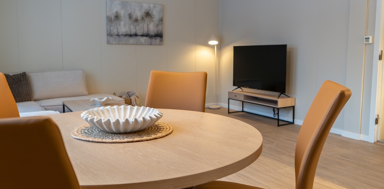 Leiligheten leies ut fullt møblert med spisebord, sofagruppe og et bad med WC/dusj. Leilighetene er utstyrt med alt man normalt trenger: et komplett utstyrt kjøkken, vaskemaskin, støvsuger, sengetøy, håndklær, etc. for inntil 4 personer.