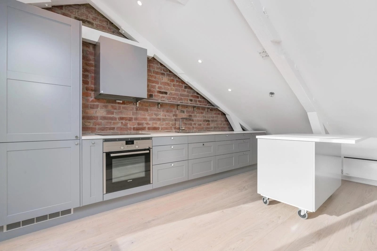 Resten av boligen er møblert med integrerte hvitevarer som kombiskap, oppvaskmaskin, komfyr.
