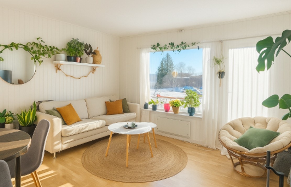 -Romslig og lys stue med utgang til balkong med gode solforhold