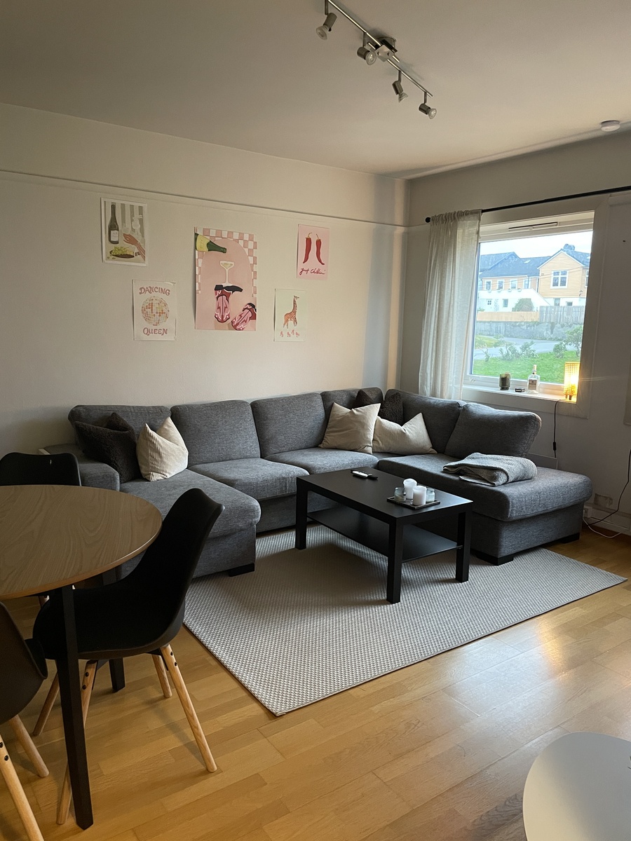 Leiligheten har romslig stue, fullt utstyrt kjøkken, bad, og vaskemaskin i vaskekjeller. Du deler leiligheten med en hyggelig jente i 20-årene som studerer.