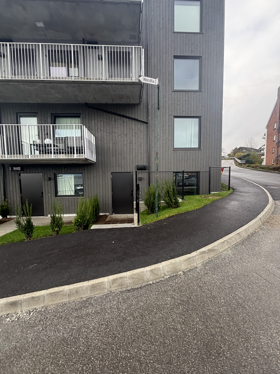 Leiligheten har inngang via fellesgang. Denne deles mellom 2 leiligheter der man må ha kode for å komme inn.
