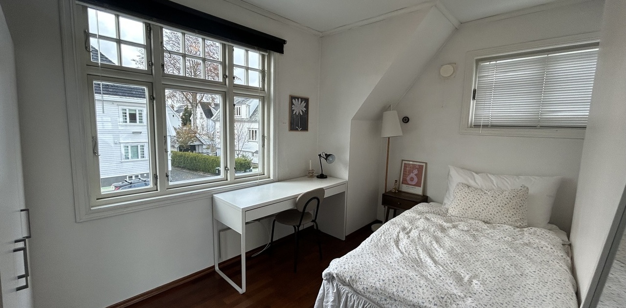 Rommet leies ut med 120 seng, stort garderobeskap, nattbord, skrivepult, speil og stol💖 Det er et stort vindu på rommet som slipper inn mye naturlig lys!