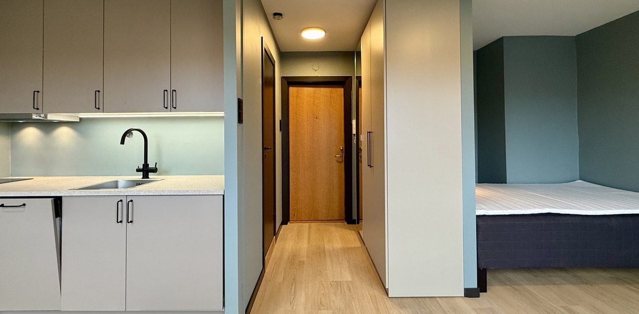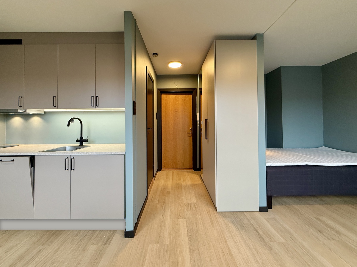Leiligheten leies ut med seng og romslig garderobe i entre, men ellers umøblert.