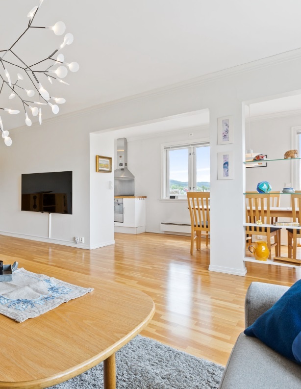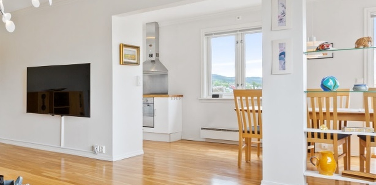 A room is available for rent in an apartment near Berg starting January 1st, 2026. The apartment is on the second floor of a 2-person house, with great views to the south and west. The 88 sqm apartment contains a tiled hallway, 2-bedrooms, tiled bathroom with jacuzzi and shower, as well as a washing machine. The living room is spacious with integrated appliances and a dining room. There is a south-facing balcony from the kitchen, and room for several cars in the parking space. There is also plenty of storage space in the basement storage room.