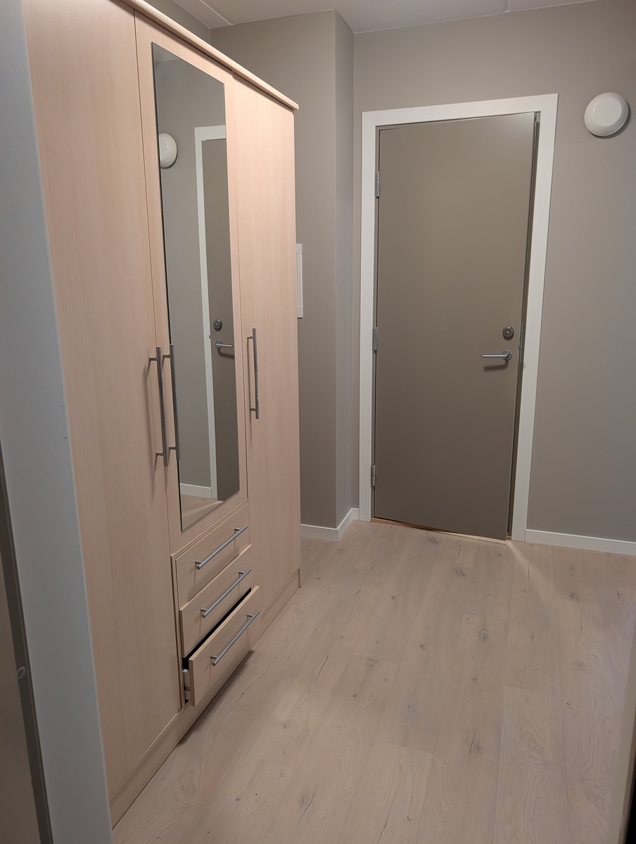 Innhold: Åpen stue/kjøkkenløsning, soverom, gang og bad. Det medfølger hvitevarer og vaskemaskin. Vaskemaskin vil ikke bli erstattet eller reparert om den blir ødelagt. Det medfølger garderobeløsning i gang.
