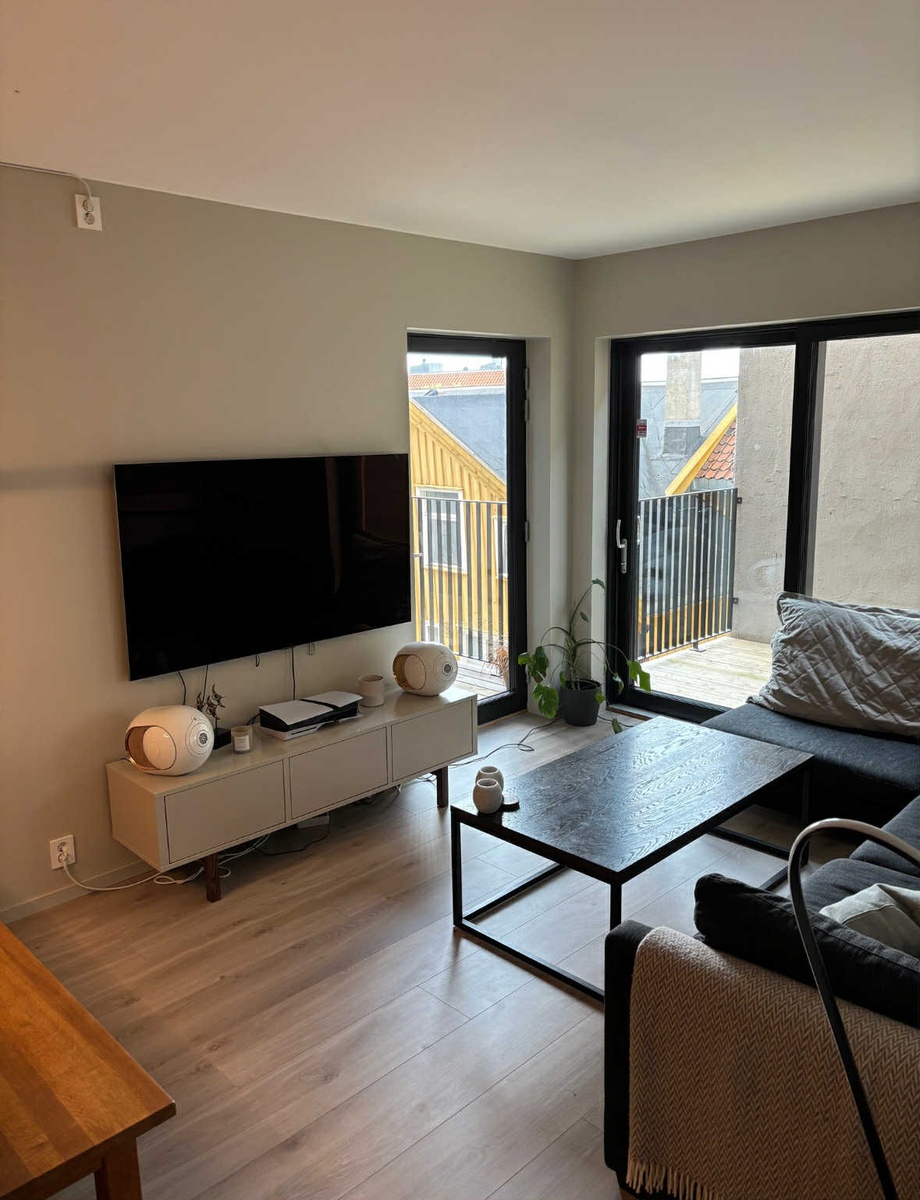 Kort om leiligheten: Den ble bygd i 2023 og holder gjennomgående høy standard. Kort vei til kollektivtransport, matbutikk, apotek, pol mm. Vi har stor felles intern og ekstern bod som kan brukes til lagring ved behov. Badet er stort, omtrentlig 9kvm. Kollektivet er møbler med alt fra 65 tommers flatskjerm, stereoanlegg, kaffetrakter og brødrister:)
