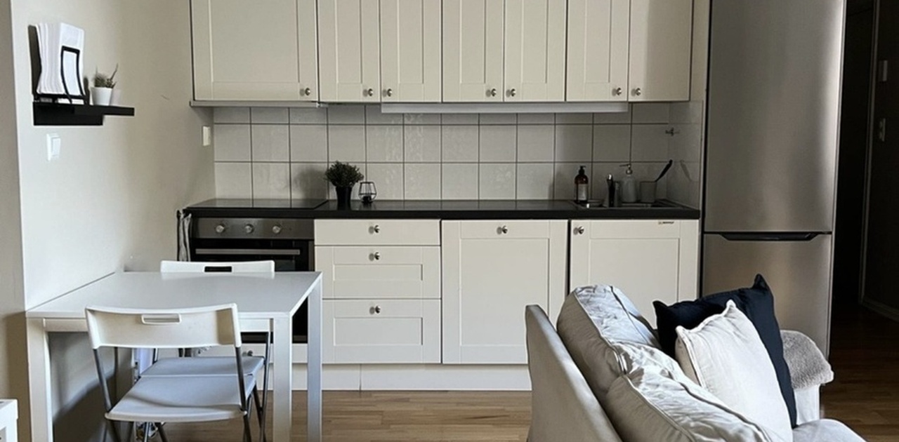 Leiligheten er møblert med hvitevarer + vaskemaskin på badet (den inngår ikke i leiligheten, denne må vi dekke selv)
