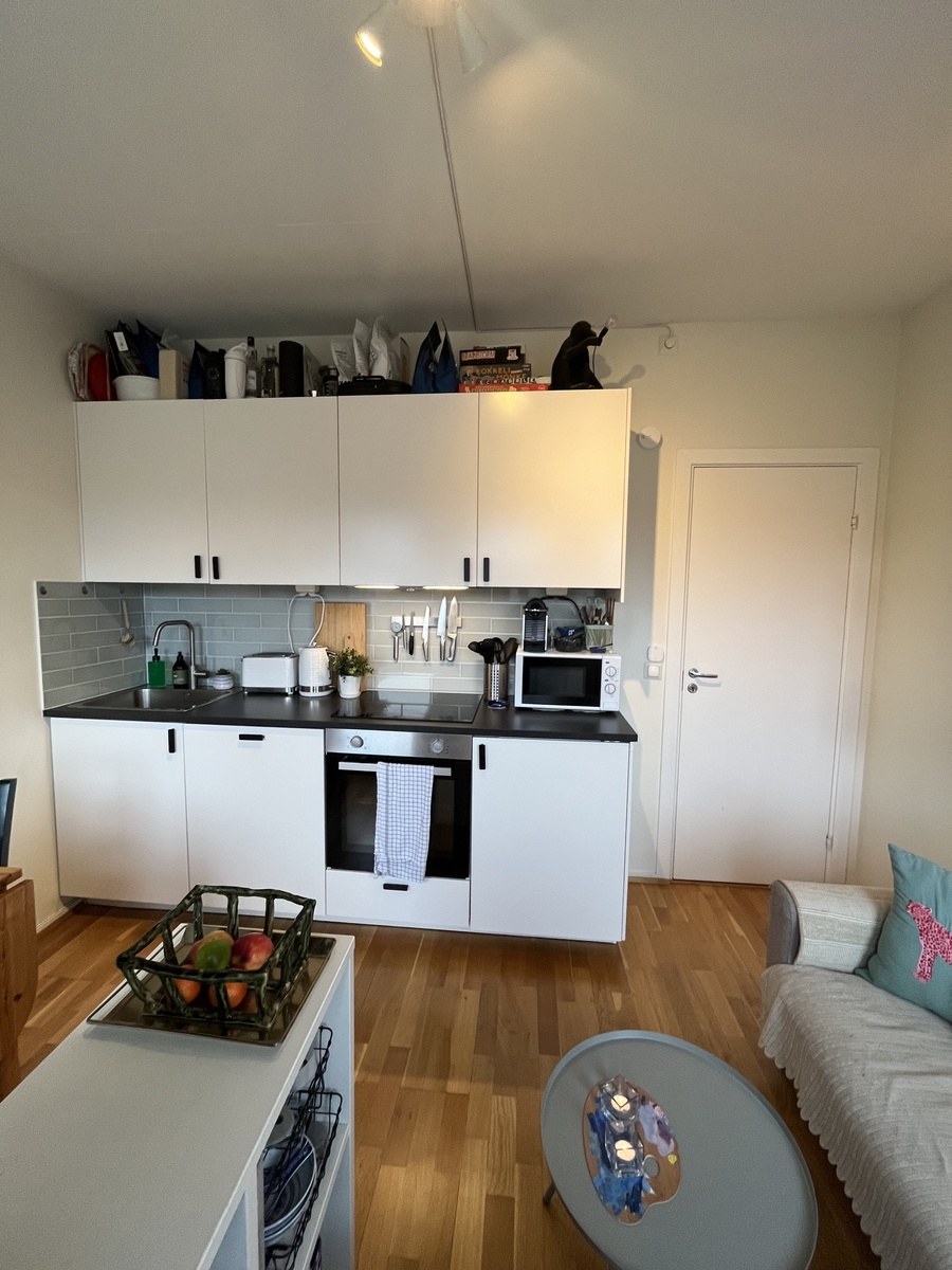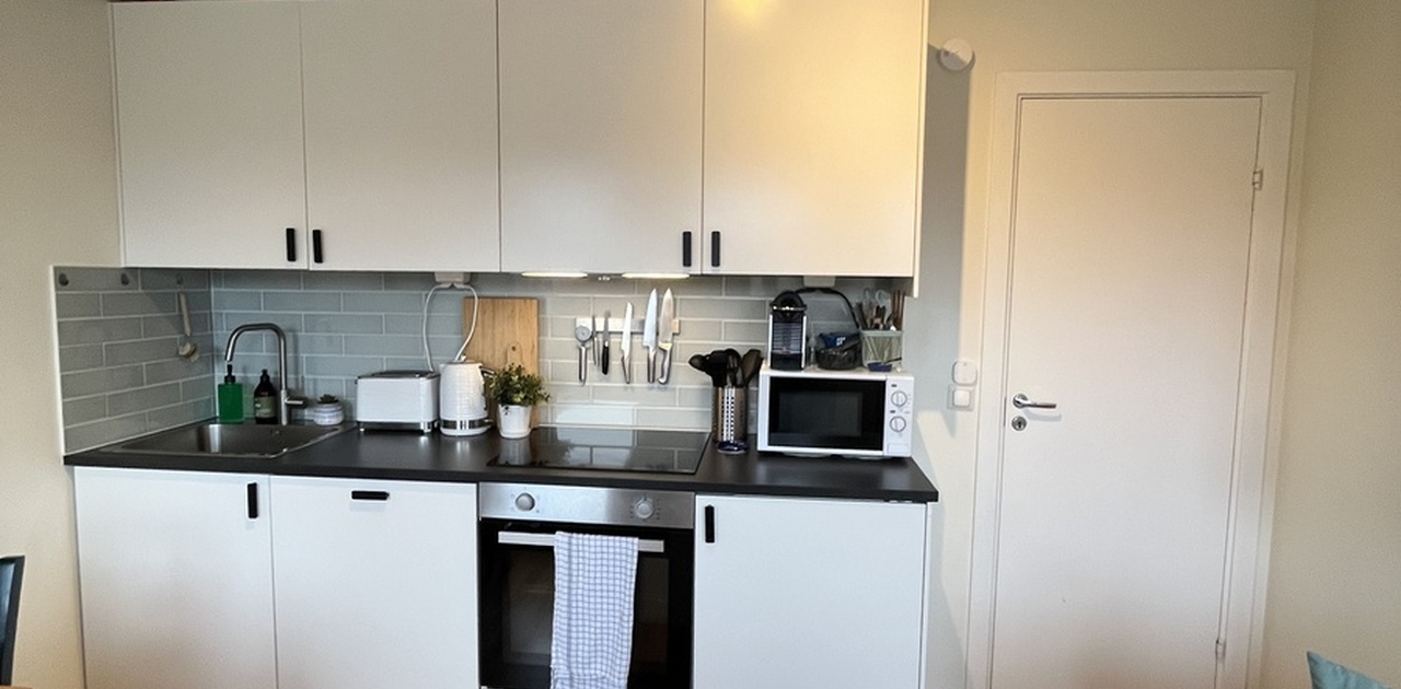Soverommet og kjøkken/stue har nydelig utsikt utover Botanisk hage. Kjøkkenet inneholder integrerte hvitevarer som komfyr, koketopp, oppvaskmaskin og kjøleskap. I gangen er det montert vaskemaskin med skap for lagring. Badet er nyrenovert med vegghengt toalett og ny innredning. Soverommet har plass til dobbeltseng og garderobe.