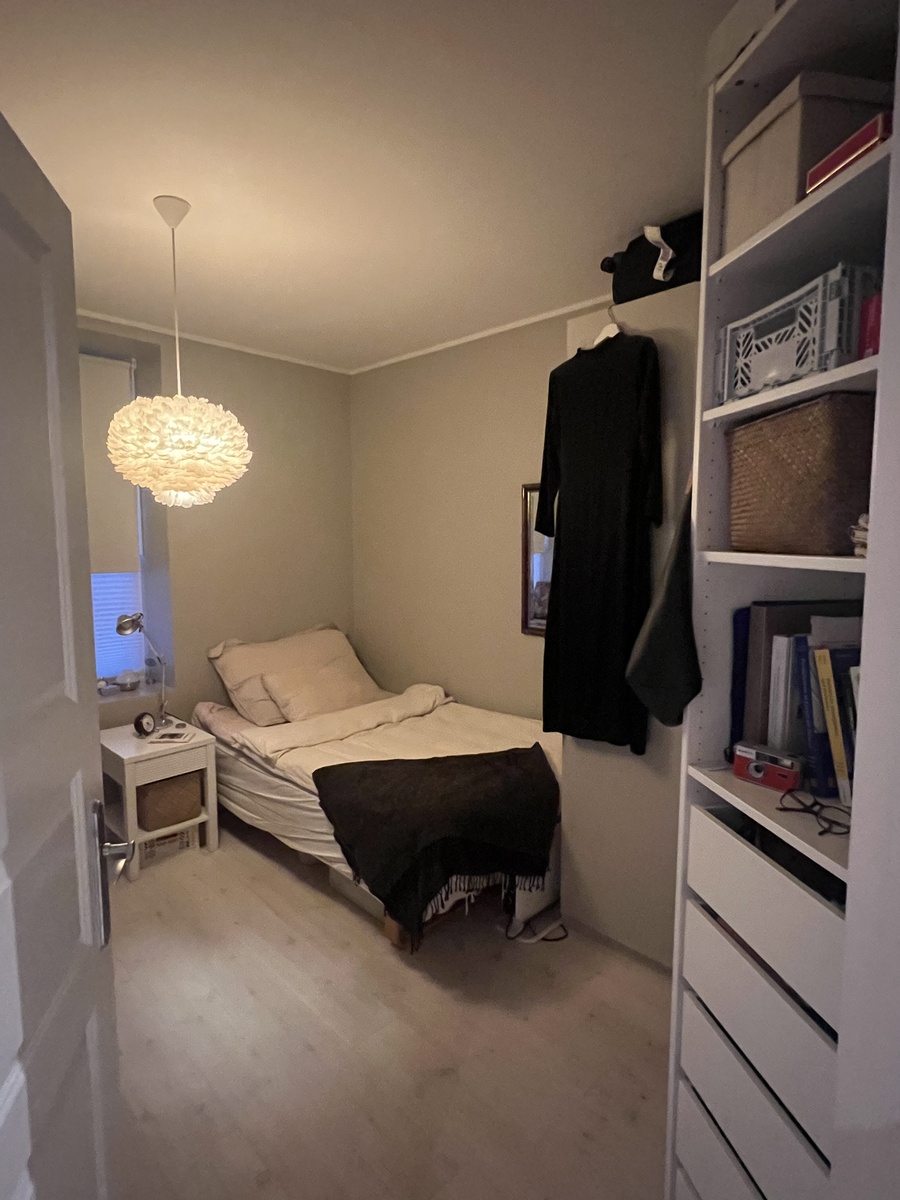 Jeg er en 24 år gammel jente fra Bergen, som til nyttår starter på mitt siste semester på masterstudiet. Venninnen min, som eier leiligheten, skal på utveksling etter jul og dermed er det et ledig rom leiligheten.