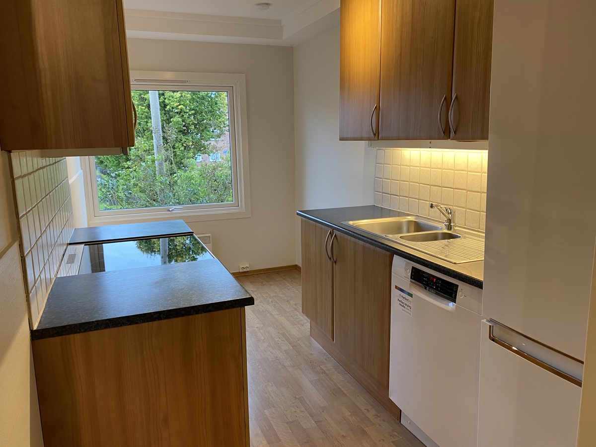 Leiligheten ligger i 2. etasje og har stue med gode lysforhold, soverom, kjøkken med nye hvitevarer og bad. Bredbånd og hvitevarer er inkludert i leien. Ikke røyk. Ikke husdyr. Se oversikt over hva vi får til leie på hjemmesiden vår kambo(.no) under fanen "Boliger til leie".