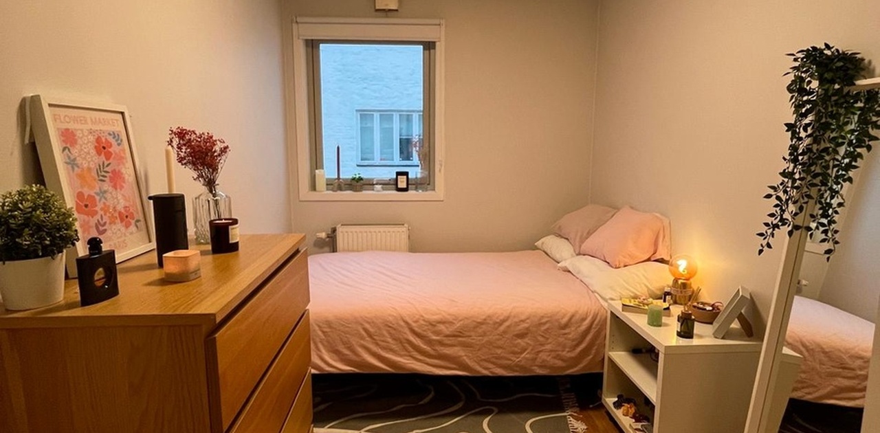 The room is partially furnished with a wardrobe and option to keep the bed. Heating, hot water and fast internet is included for NOK 400,-/month.