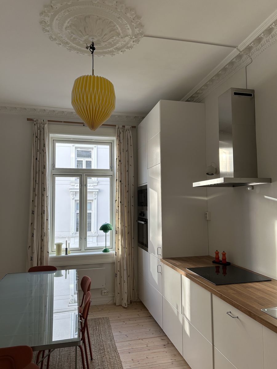 Jeg leier ut en nyoppusset, fresh og innbydende 2-roms i en klassisk, verneverdig bygård fra 1898. Leiligheten ligger i 2. etasje, har en svært god planløsning og er gjennomgående oppusset de siste årene. Her får du en unik kombinasjon av moderne komfort og klassisk bygårdsjarm! Leies ut møblert. Perfekt beliggenhet rett ved supersentrale Bogstadveien og Bislett, men tilbaketrukket i en lite trafikkert sidegate.