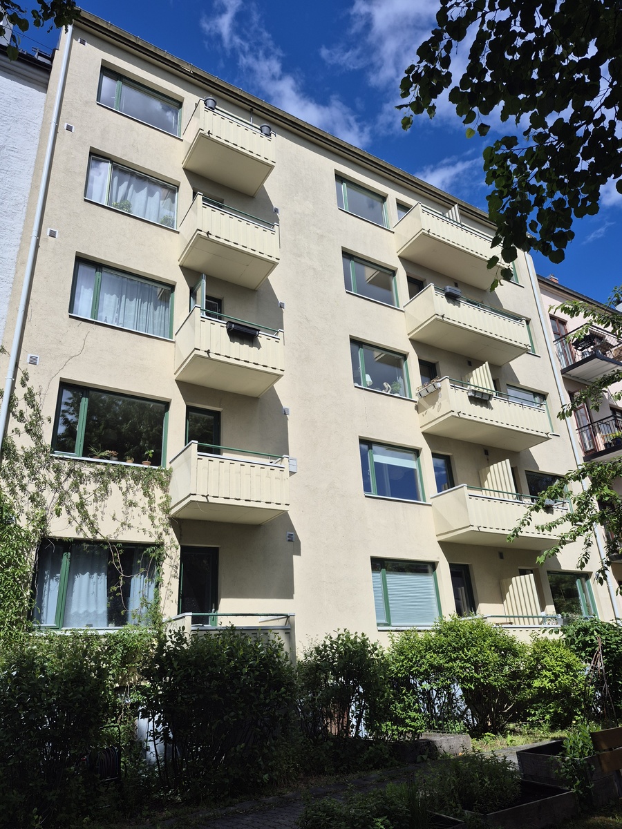 Leiligheten er arealeffektiv, med kombinert stue, kjøkken og arbeidsrom. Det er et stort vindu og balkong ut mot en frodig og rolig bakgård. Det er også en sovealkove med 120 cm seng. Leiligheten ble pusset opp i 2017 og den leies ut møblert. Leietaker får tilgang til en loftsbod, og det er fellesvaskeri og sykkelrom i kjelleren. Det er en stor bakgård til felles bruk for kvartalet, som har sittegrupper, lekeplass og sykkelparkering. Det er også en gammel stall i bakgården som kan leies til ulike arrangementer.