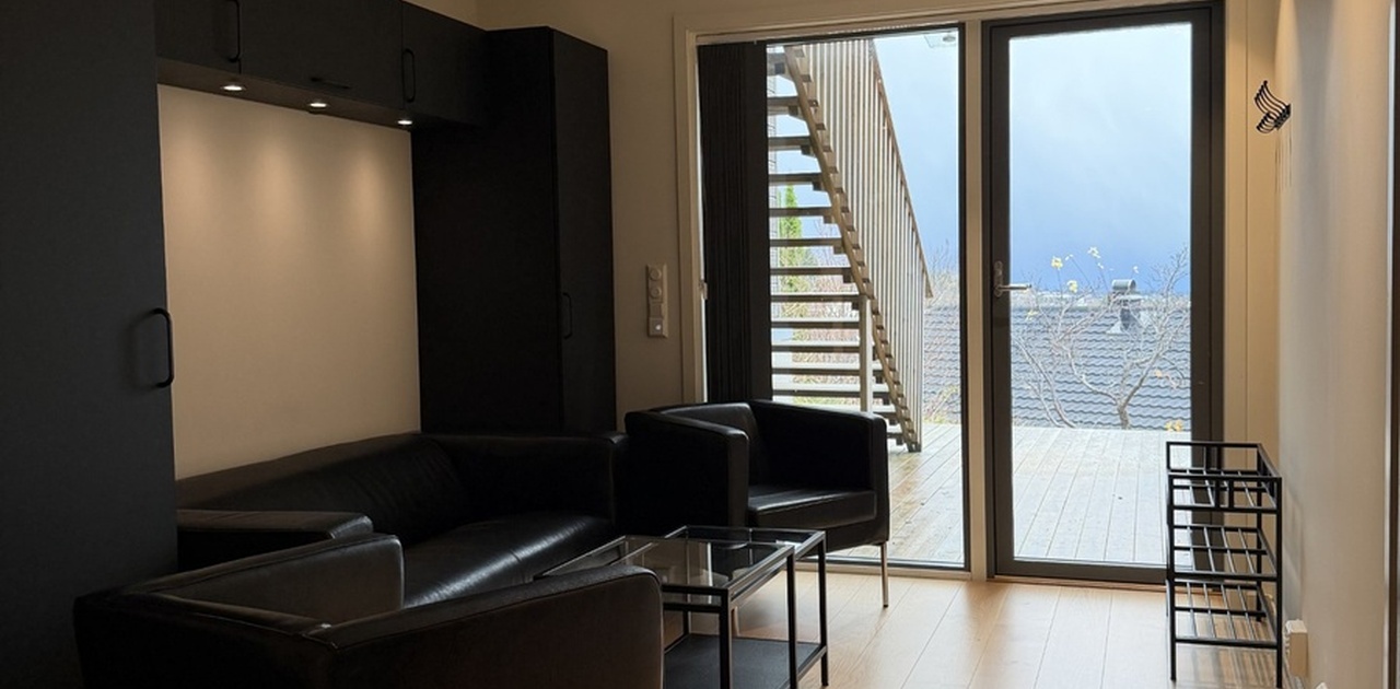 Leiligheten er pent møblert og inneholder praktisk sovealkove, moderne kjøkken med hvitevarer, samt romslig stue med gode lysforhold. Strøm og internett er inkludert i leien.