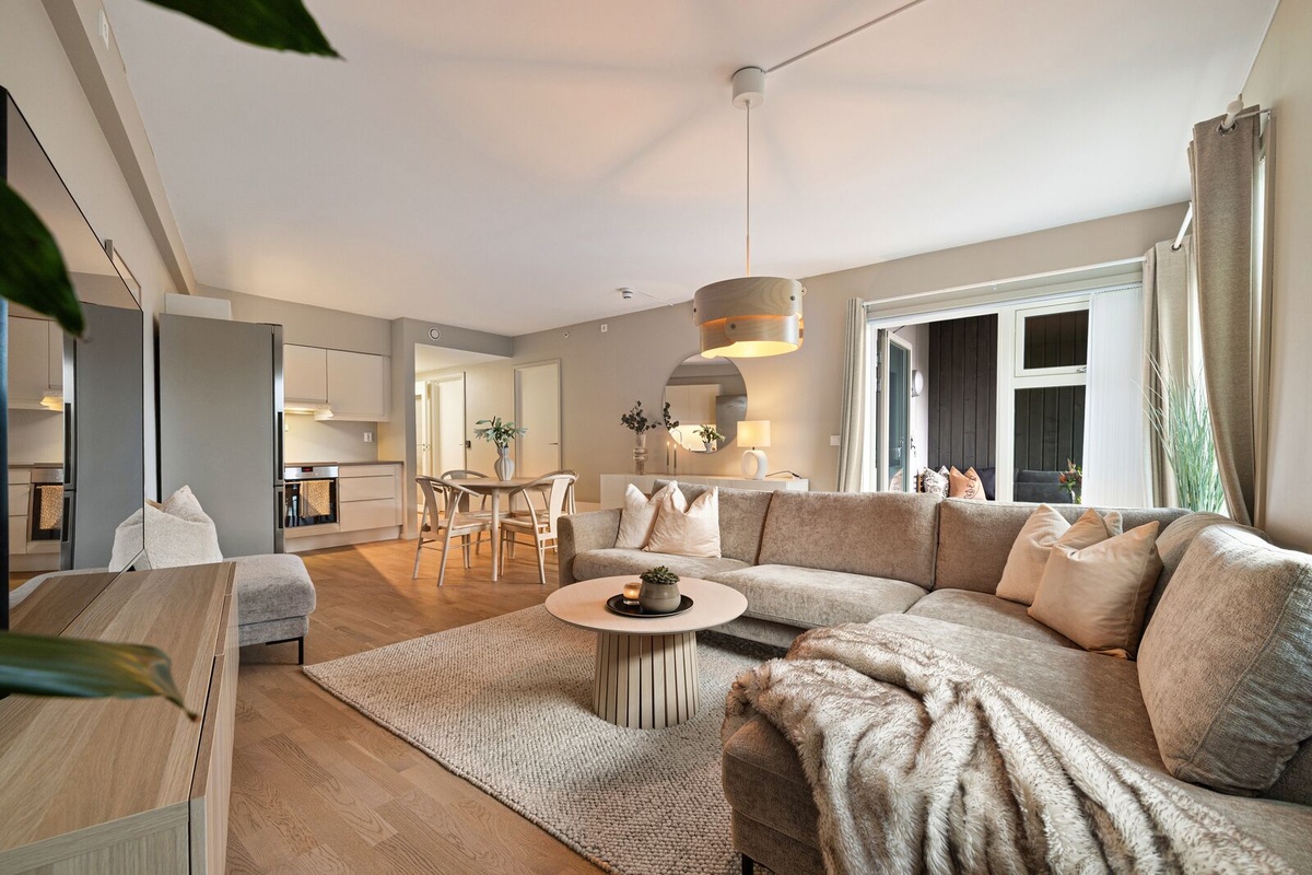 Leiligheten er på 73 m² og har to soverom, hvor jeg skal bo i det ene. Rommet ditt vil være ca. 11,9 m² og leies ut møblert med dobbeltseng og skap. Resten av leiligheten er også fullt møblert. Jeg overtar leiligheten 2. januar, så møbleringen blir ikke helt lik bildene – men oppsettet blir noenlunde det samme.