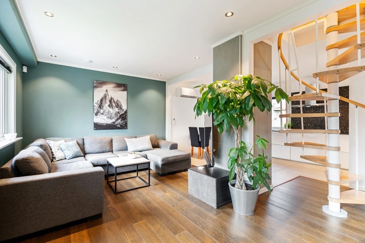 Gjennomgående god standard og stilrik utforming i lyse og behagelige farger. Fin planløsning over 2 etasjer med bl.a. åpen stue/kjøkkenløsning, som gir et romslig uttrykk, 3 soverom og bad.