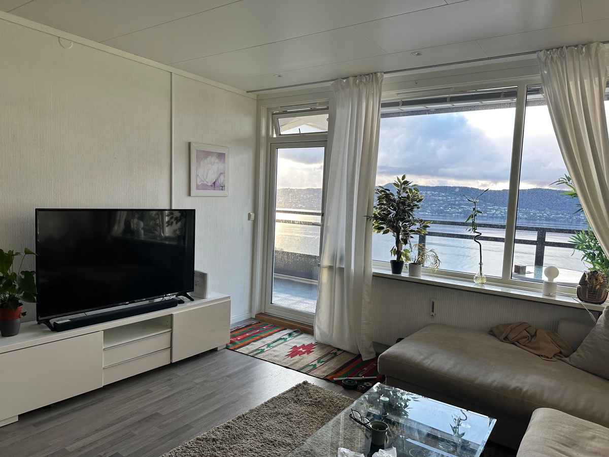 Jeg ønsker å leie ut et rom på 9 m² i Helleveien 263, i 8. etasje. Leiligheten har flott sjøutsikt og gode solforhold. Den holder en fin og moderne standard. Det tar ca. 3 minutter med buss til NHH og 15 minutter til sentrum. Det finnes bussholdeplass rett over veien, og busslinjene 12 og 19 stopper der. Det er også en butikk i gateplan.
